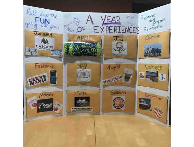 Prepaid and preplanned experiences for a year of FUN! Gift cards include: Dave & Busters, Prairie Lanes, Cascade Mountain, Beans & Cream, and many more!