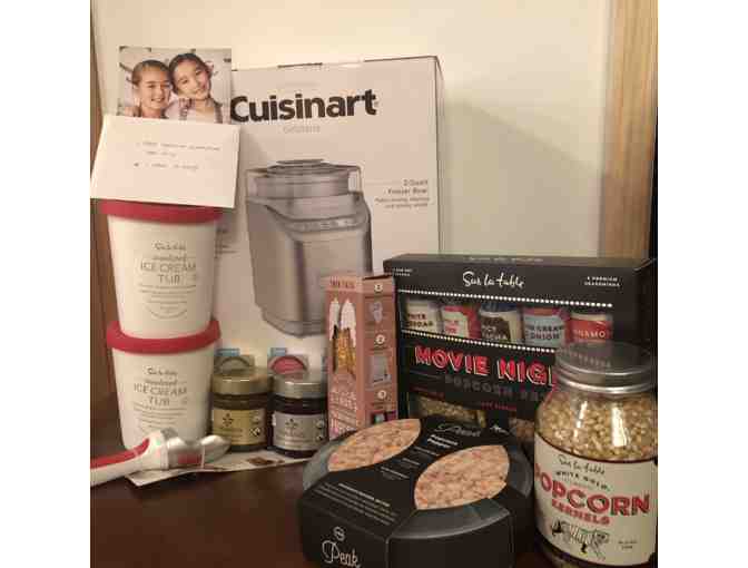 The families from 607 put together a basket compiled from Sur La Table that includes a mix of popcorn and salts with a simple microwavable popcorn maker along with a Cuisinart ice cream maker and toppings to make a nice Sunday. It also includes a one-week cooking camp at Sur La Table for a child aged 12-17.