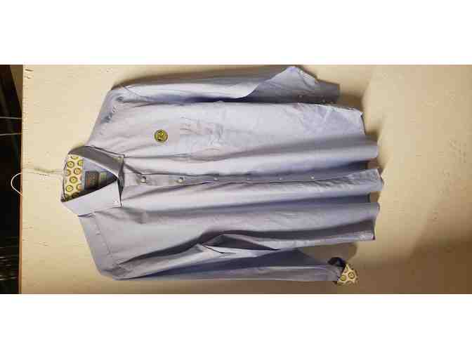 Calling all Rotarian Men! Here's your chance to own a very nice Thomas Dean dress shirt and show your Rotary spirit at the same time. The shirts have the Rotary wheel embroidered above the breast pocket and a Rotary wheel print fabric inside the collar and cuffs.