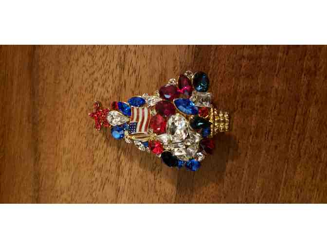 This collectible pin is a red, white and blue pin that can be worn at Christmas time or any time. It was purchased from the Ronald Reagan Presidential Library over 15 years ago and is now a collectable piece.