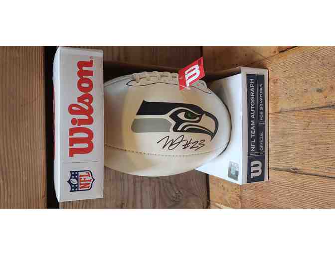 The fortunate winner of this package receives an official Seahawks football is signed by player Neiko Thorpe #23.