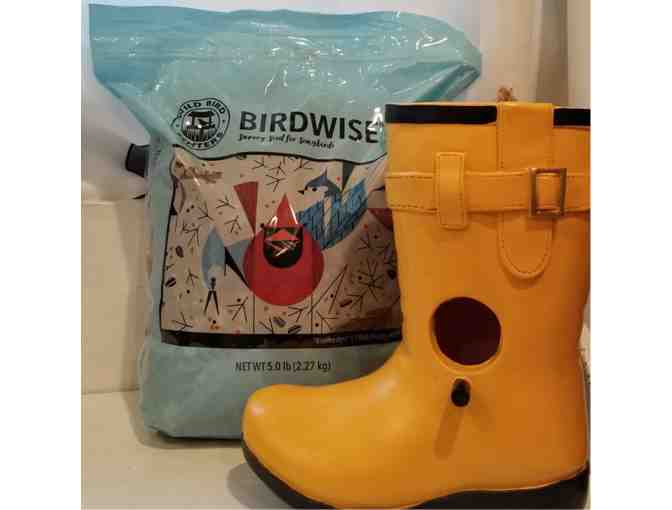 Got Boots? Adorable Ceramic Boots Bird House and Planter, Bird Seed and Kitchen Towel.