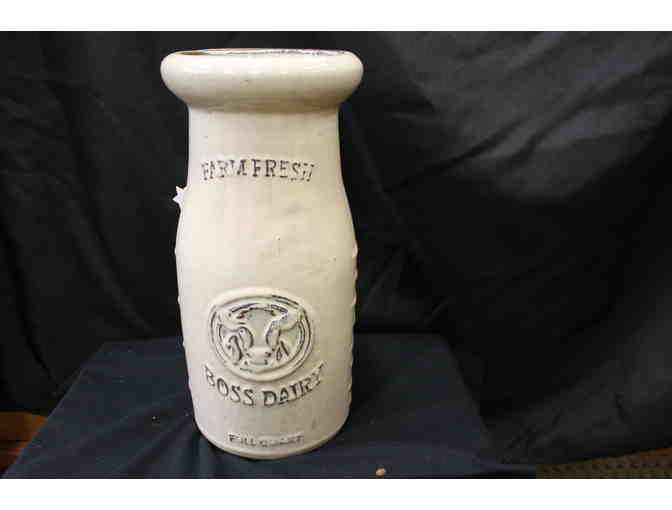This charming cream colored milk bottle shaped planter measures 15"Hx7"W and will look fabulous on any front entryway or patio with or without flowers!