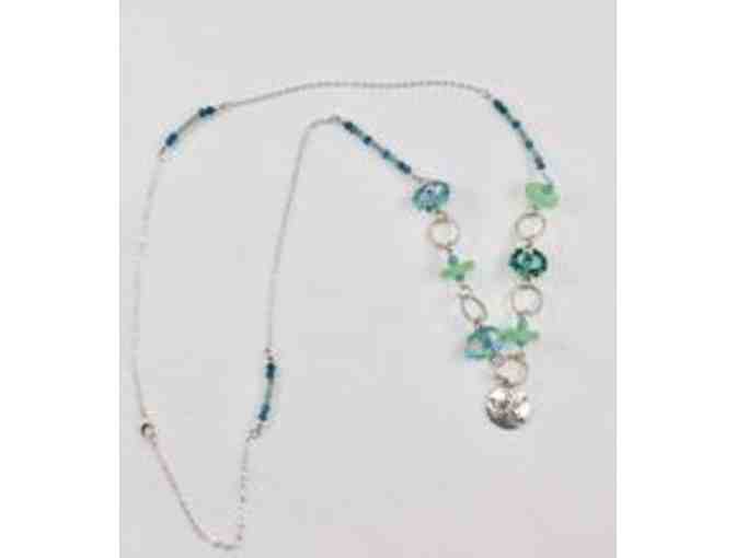 A beautiful piece to add to your jewelry collection, a Blue Lagoon Creations Sea Green and Aqua Sand Dollar Necklace!