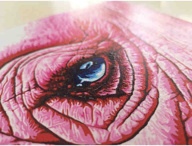 All artworks are hand-painted in a color spectrum of brilliant, popping pink paired with leering blue crystal eyes that strike a tone of both reverence and power which perfectly capture the essence of the animals.