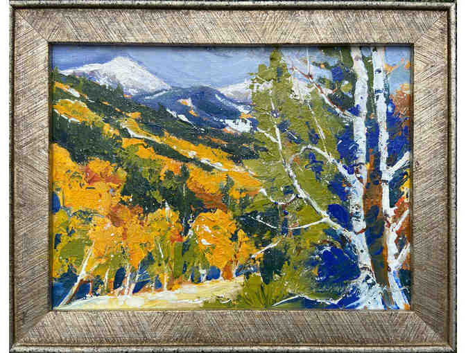 6x8 Framed Original Oil Painting Painting “Early Snow, Mt Yale” by Nora Larimer from Rock Run Gallery.