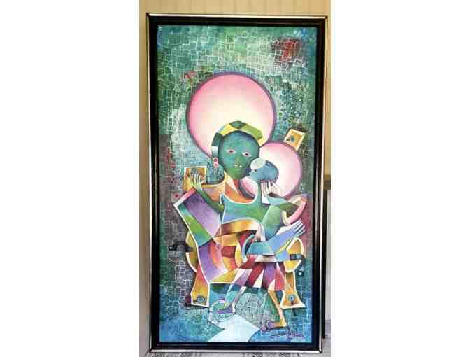 Sacred Maternity by Frantz Delva. Acrylic painting. Framed size 41” x 22”.