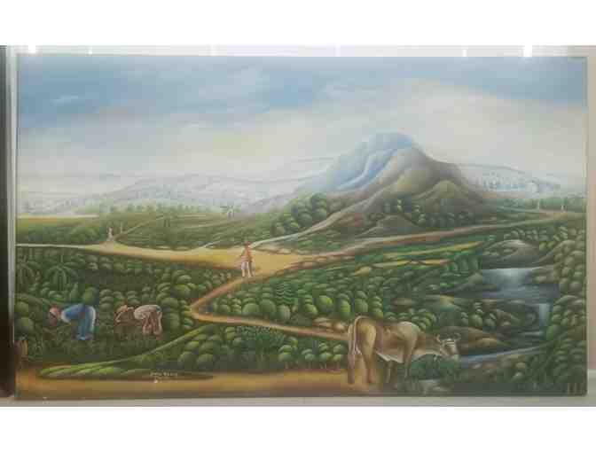 This is one of 16 extraordinary pieces of artwork from both Haitian artists in Jacmel, Haiti and from the Haitian Artist Assembly of Massachusetts. Proceeds from these 16 paintings will be shared by the artists and Haiti Nursing Foundation.