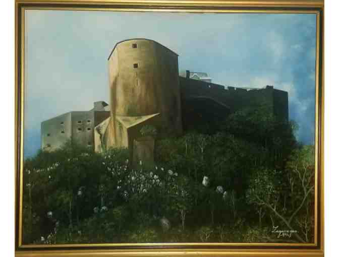 This is one of 5 donated paintings from Haitian American artists some of whom are members of the Haitian American Artists Assembly of Massachusetts.