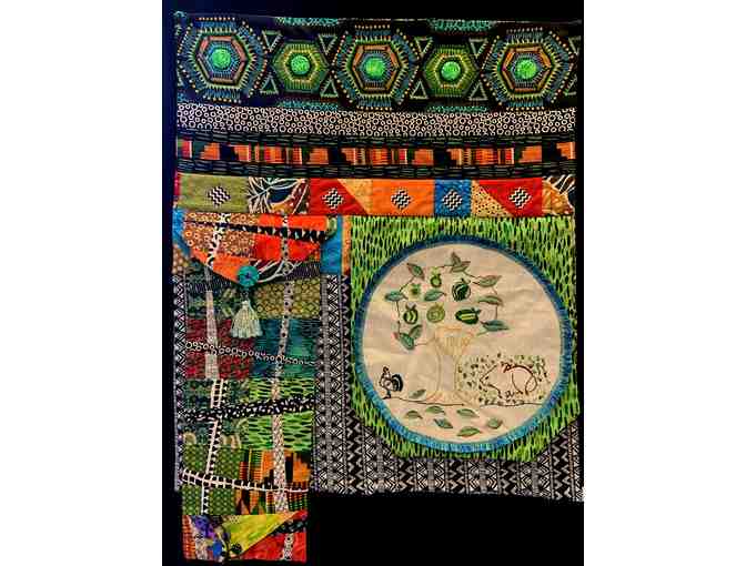 Embroidered cotton, African Wax batiks, improvisational piecing
