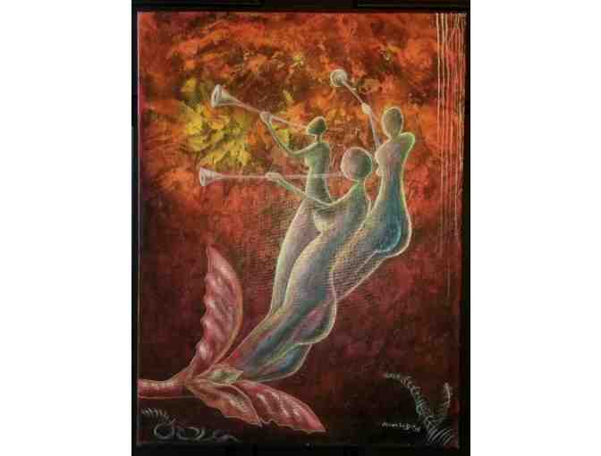 Three Trumpetists by Nixon Léger. Acrylic painting. Unframed size 24” x 18”