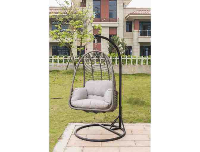 The unique shape of the basket chair will draw your eye to it, but the comfy cushion seat will draw you in for hours of relaxation! Perfect poolside or on your patio!