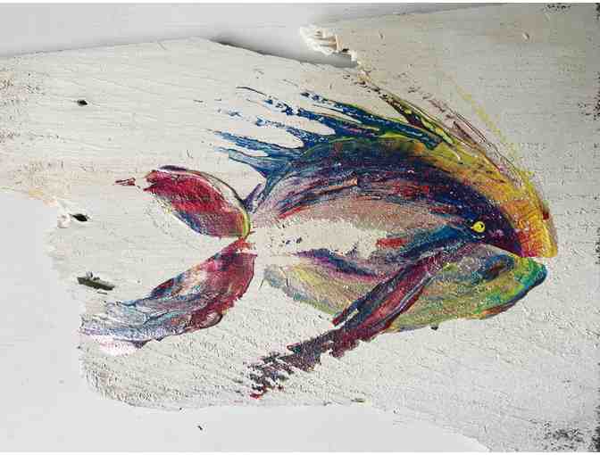 Each shingle will be lightly brushed to release any dusty dirt, being careful to not to disrupt the natural texture. We prep the shingle with white paint so the creatures and surfboards POP making sure to leave some of the natural weathering intact and uncovered.