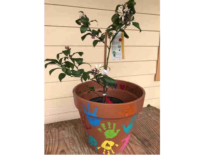 This Class Art Project is a decorated terra-cotta pot and it includes a Meyer lemon tree.