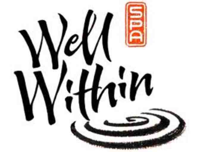 50 Minute Hot Tub and Sauna Session for 2 people. Well Within Spa provides outdoor and indoor private spas and saunas. Each room overlooks a traditional Japanese garden with waterfall and koi pond and includes a shower, a spa, and changing area. Saunas are cedar-lined. Soothing music, towels and herbal tea complement the experience.