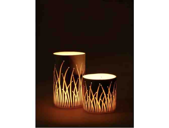 One hot summer night, I was camping in a field, and there was a crazy thunderstorm. When it was over I was treated to the most amazing firefly show in the field before me. This design was inspired by that amazing light show. Carved by hand, no two pieces are exactly the same. Holes drilled through the clay allow the light to sparkle through.