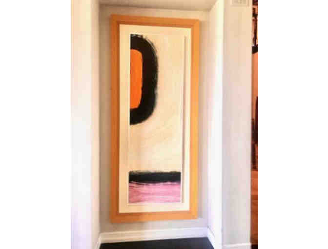 A framed painting by Ed Massey from the Syncopation series that surrounds our buildings and landmarks our school. The dimensions are 41W x 95'' L with the frame and 26''W x 80''L without the frame.