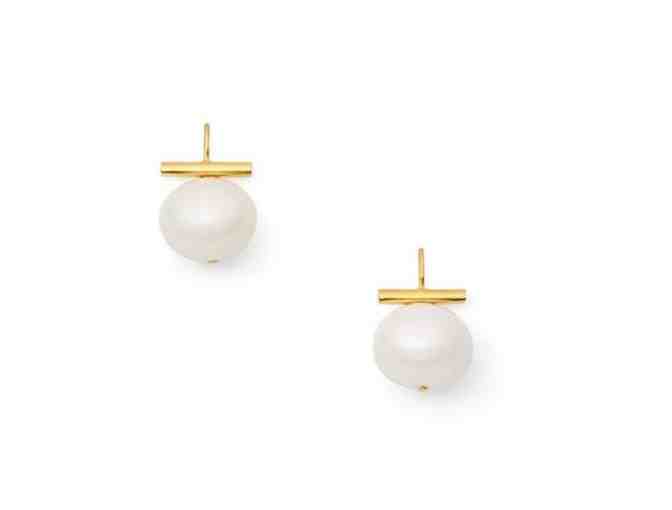 Handmade in NYC, jewelry by Catherine Canino is made with 14K polished gold over brass, carved mother of pearl, and is hand polished and lacquered for luster and shine.