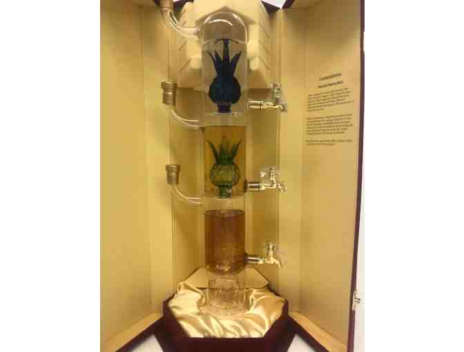 This collectible tequila features three separate sections, each divided into 250ml sections; anejo, reposado, and silver. Each section has a separate pour spout for a beautiful presentation.
