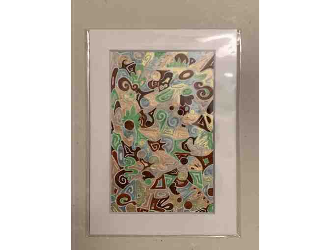 "Sadie" is an abstract orignial drawing by local artist, Leah G. Moloney. Made with gel and ink on museum quality colorfast paper. Each drawing is unique, no two are ever the same.