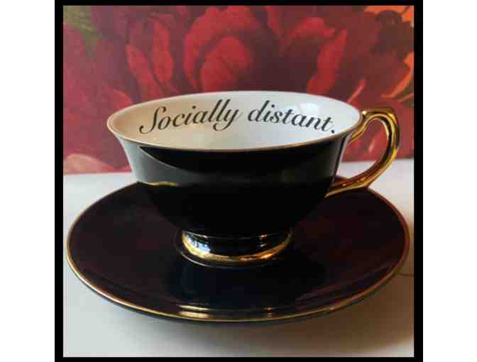 The teacup and saucer will be shipped directly, safely socially distanced, to the winning bidder, compliments of Miss Havisham's Curiousities.