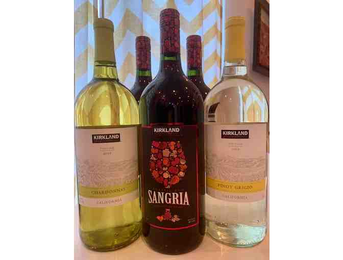 One 1.5 liter bottle of Kirkland Signature Pinot Grigio California, a classic full-bodied Pinot Grigio with intense ripe fruit flavors of grapefruit and pineapple with a hint of mineral, finishing with notes of of honey and apple.
