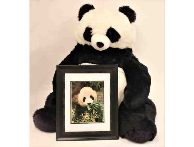 This auction item inlcudes a giant stuffed panda (40" X 30") and a beautiful 8" X 10" panda photo with frame.