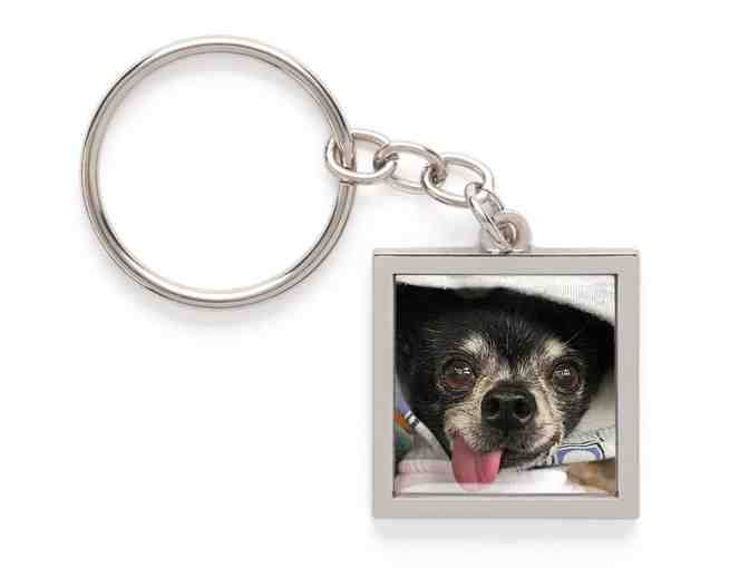 Frankie Key Ring - made of high-quality pewter, finished with a UV-resistant glossy coating to protect and permanently seal the image. Measures 1-1/4" x 1-1/4"