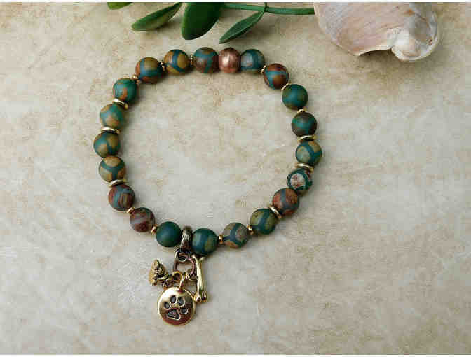 Matte Green & Orange Tibetan Agate Dog Charm Bracelet