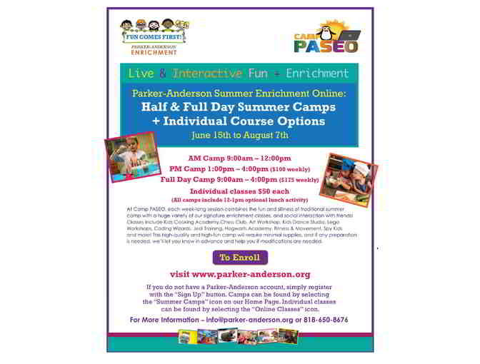We are happy to announce that Camp P.A.S.E.O (Parker-Anderson Summer Enrichment Online) is currently open for enrollment!