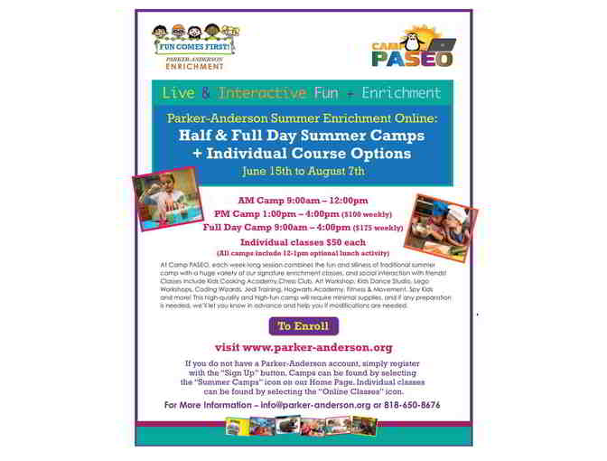 Camp P.A.S.E.O (Parker-Anderson Summer Enrichment Online)-1 full week