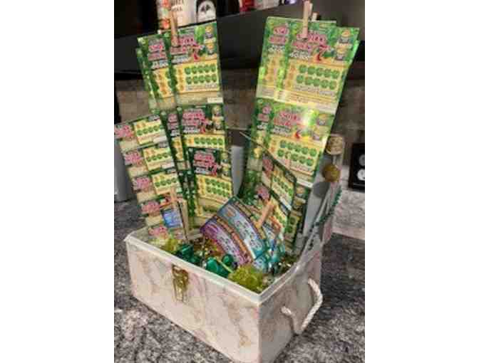 This "lucky" decorative box includes $70 in scratch-off lottery tickets and shamrock ornaments.