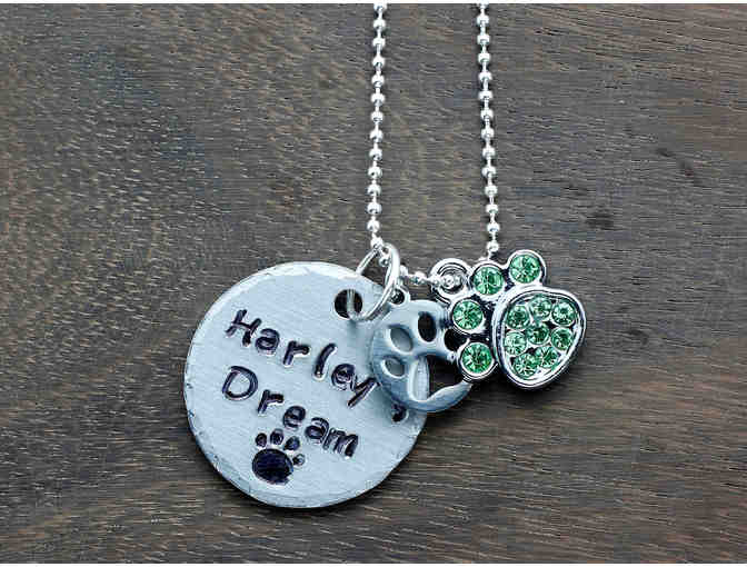 Hand-cut, hammered and stamped aluminum HARLEY'S DREAM pendant with 30" chain plus charms.