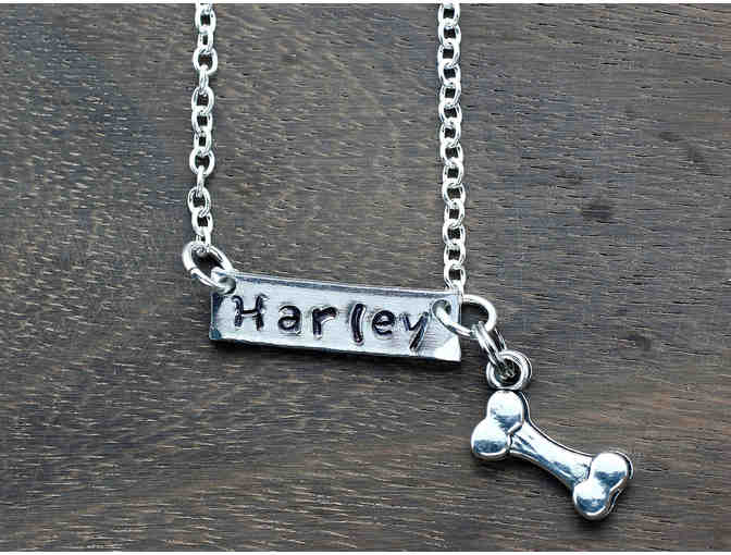Hand-cut, hammered and stamped aluminum HARLEY pendant with 16" chain plus charm.