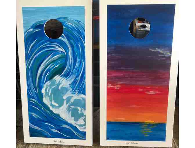 1ST GRADE BEACH THEMED & SIGNED CORN HOLE SET