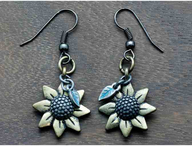 Brass color sunflower earrings. 1 1/2 inches in length.