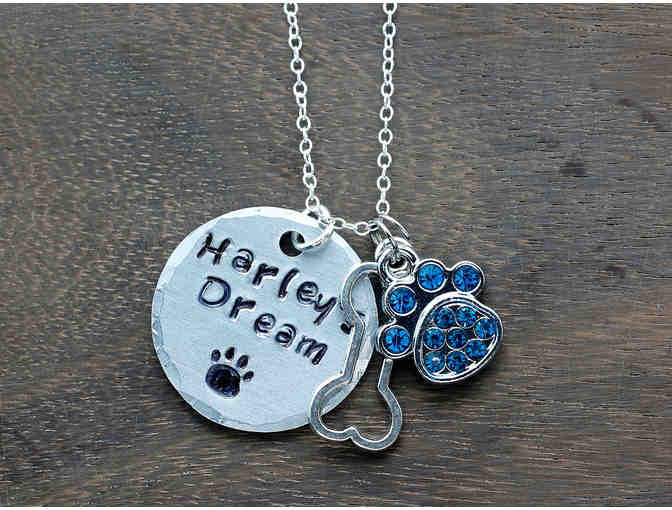 Hand-cut, hammered and stamped aluminum HARLEY'S DREAM pendant with 18" chain plus charms.