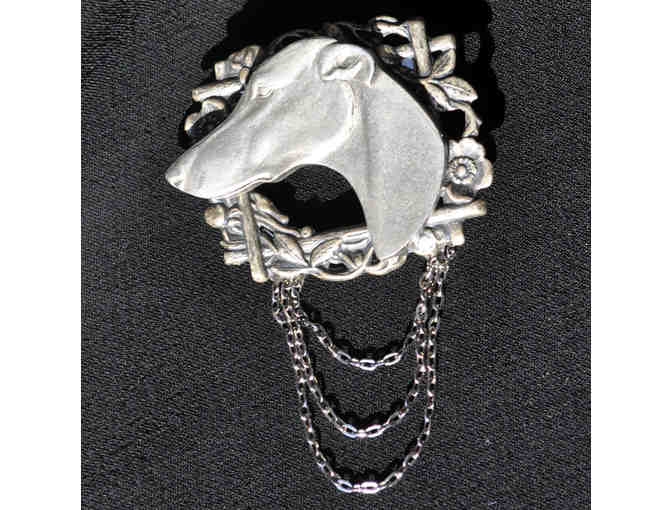 Greyhound Pin - Silver-Colored Pewter with Wreath/Chains