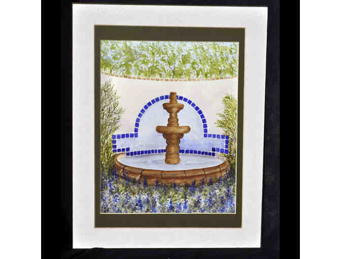 Watercolor - Tucson Botanical Garden Fountain - Matted/Unframed by Marlene Koch