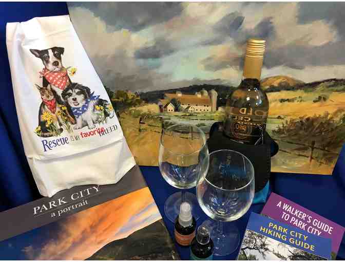 There's so much to love about Park City! This package includes all things PC: a beautiful original painting from a print of the famous McPolin Barn, a Park City coffee book featuring iconic images, and a Hiking and Walking book to show you how to place yourself into the beautiful Park City Mountainside. While you are reading up, enjoy a bottle of Park City's Old Town Cellars wine, complete with People's Health Clinic wine cozy and 4 pint glasses from Right at Home and Sugarhouse Distillery hand sanitizers.