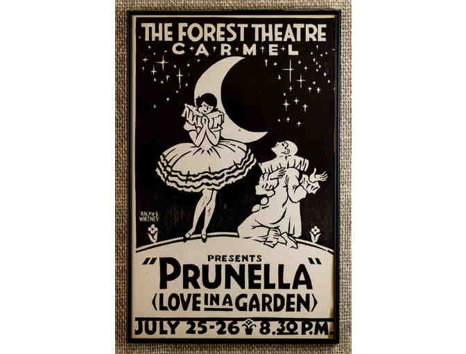 The Forest Theater Carmel presents "Prunella" (Love in a Garden) vintage Poster July 25-26, 1924. 14.25 x 22.25". Framed.