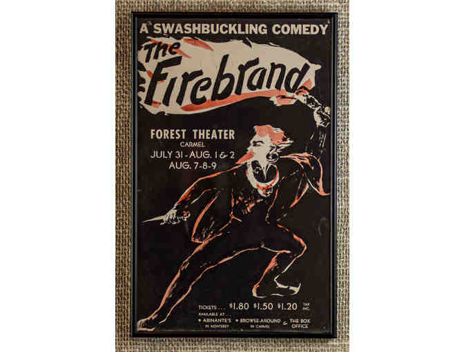 A Swashbuckling Comedy - The Firebrand, Forest Theater Carmel 11" x 17.25" vintage theatre poster, 1953, framed.