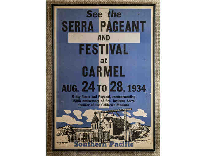 132. Serra Pageant and Festival at Carmel, vintage 1934 Poster, framed.