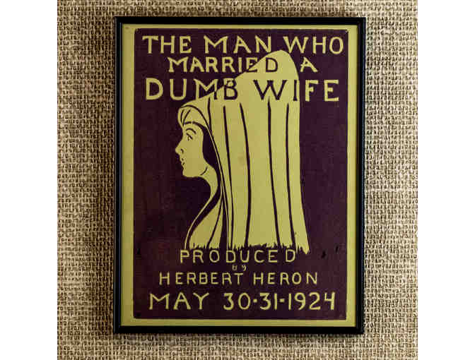 The Man Whos Married A Dumb Wife, Produced by Herbert Heron, with set and costumes designed by... his wife, Helena. May 30-31-1924 Vintage Theatre Poster, framed.