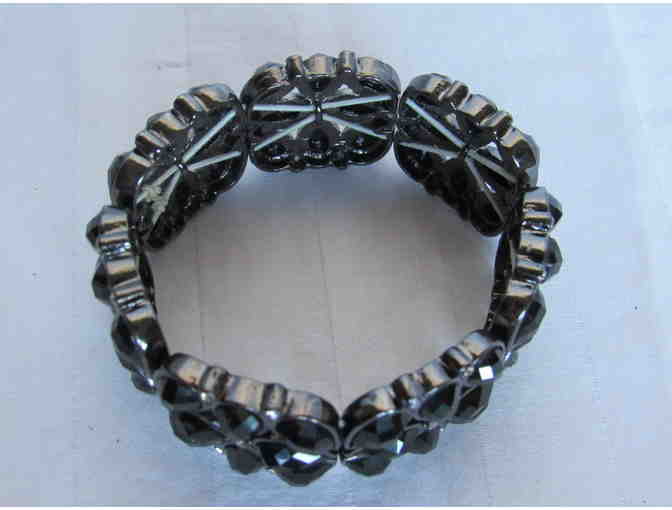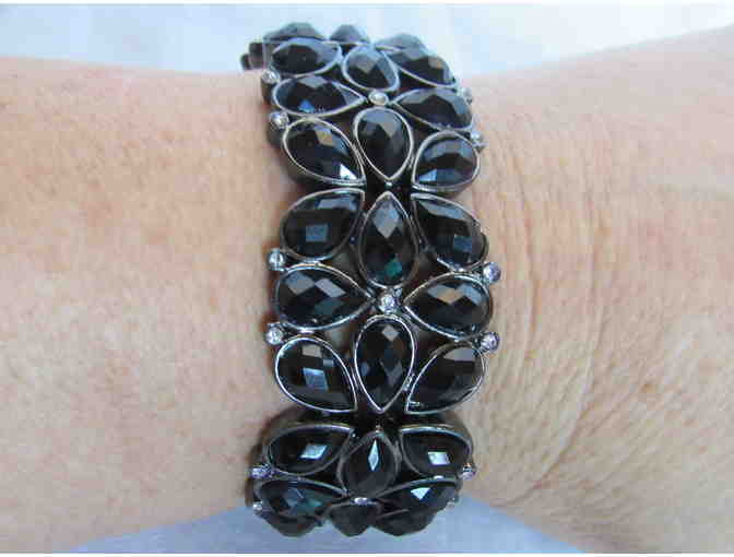 This black gemstone that looks with a flower looking design will add a little class to any wrist it is setting on.
