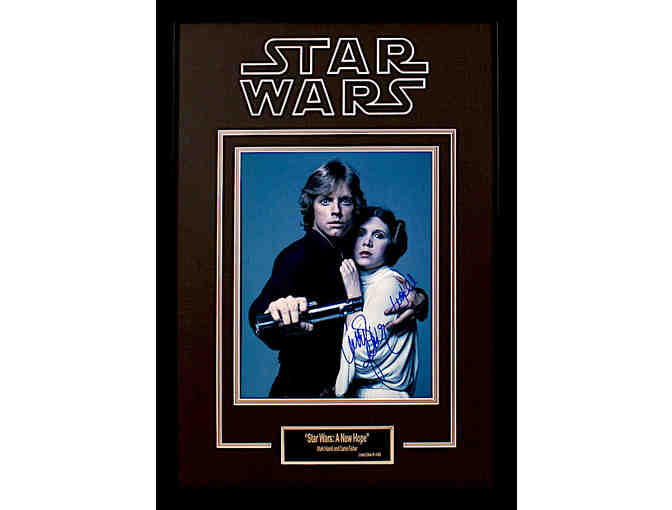 Limited Edition - "Star Wars" – (1977 Original Movie) - (2 Autographs) - (Classic Image of Luke Skywalker and Princess Leia) -***Extremely Rare Item*** Limited Edition and Individually Numbered to Only 2 0 Worldwide – Custom Framed With Large “Star Wars” Official Logo Double Laser-Cut In The Matting Of The Frame – Museum Quality – Signed by: Mark Hamill (Luke Skywalker) and Carrie Fisher (d. 12/27/2016) (Princess Leia) Star Wars 11x14 Limited Edition