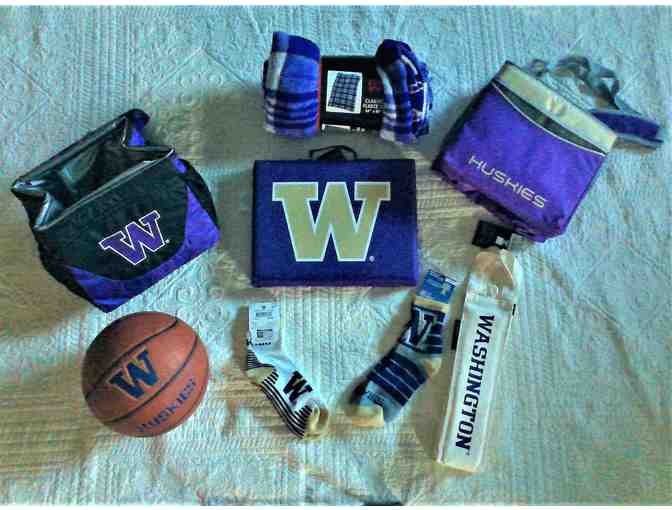 Show your UW Husky fan pride in comfort and style with this 8-piece Husky sports pack! In addition to the official UW Athletics Department regulation basketball, you'll enjoy rooting for any Husky's home team with this great equipment.