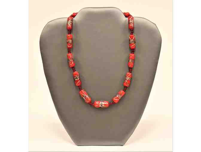 This beautiful glass bead choker was made in India and is must see item. No two beads are alike in their pattern - creating this was truly an act of love.