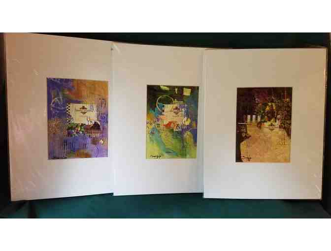 Set of 3 mixed media art titled "New Angles" by Jeanniene Sergio