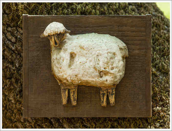 3D Sheep on Dark Wood by Ursula Fahner